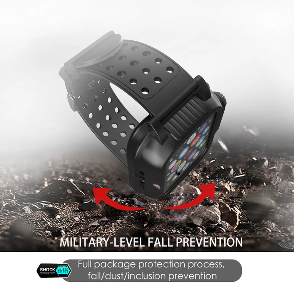 - MULTI-PROTECTIONS. 360-degree Full body protection and rubber edge designed shockproof which can withstands drops from 6.6'/2 m for thousand times. This Apple Watch case is also IP65 Waterproof and Snow/Dirt Proof, it stops any dirty and dust into your Apple Watch Series 9 / 8 / 7, rugged to adapt to all harsh environments.